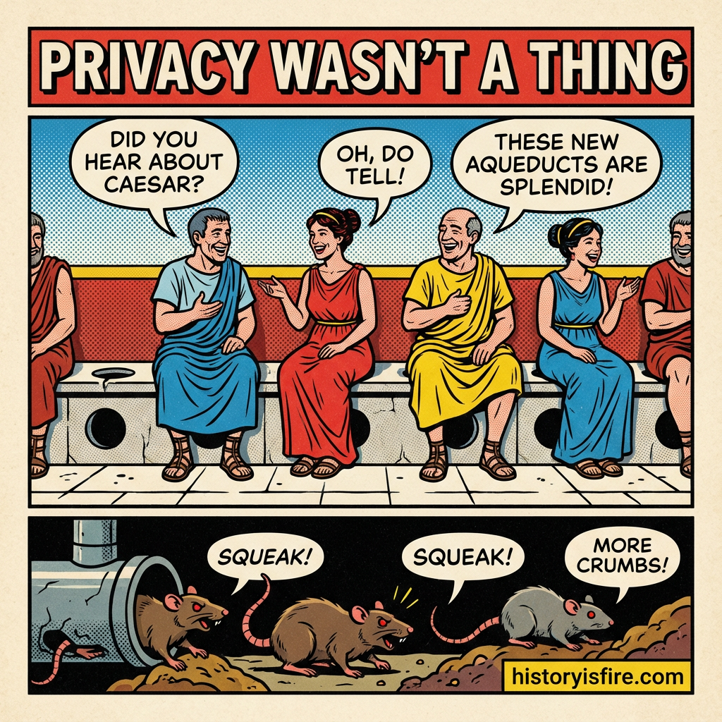 Ancient Romans had a totally different concept of privacy. Their public latrines (_foricae_) were basically social clubs where you could catch up on gossip, make business deals, and, you know, poop. 💩