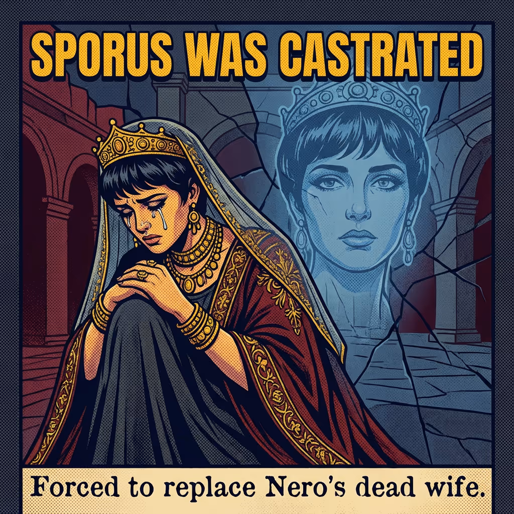 In 67 AD, Nero became infatuated with a young slave boy named Sporus, who reportedly bore a striking resemblance to Nero's deceased wife, Poppaea Sabina (whom Nero himself had allegedly kicked to death). In a horrifying act of cruelty, Nero ordered Sporus to be castrated and then married him in a lavish public ceremony.
