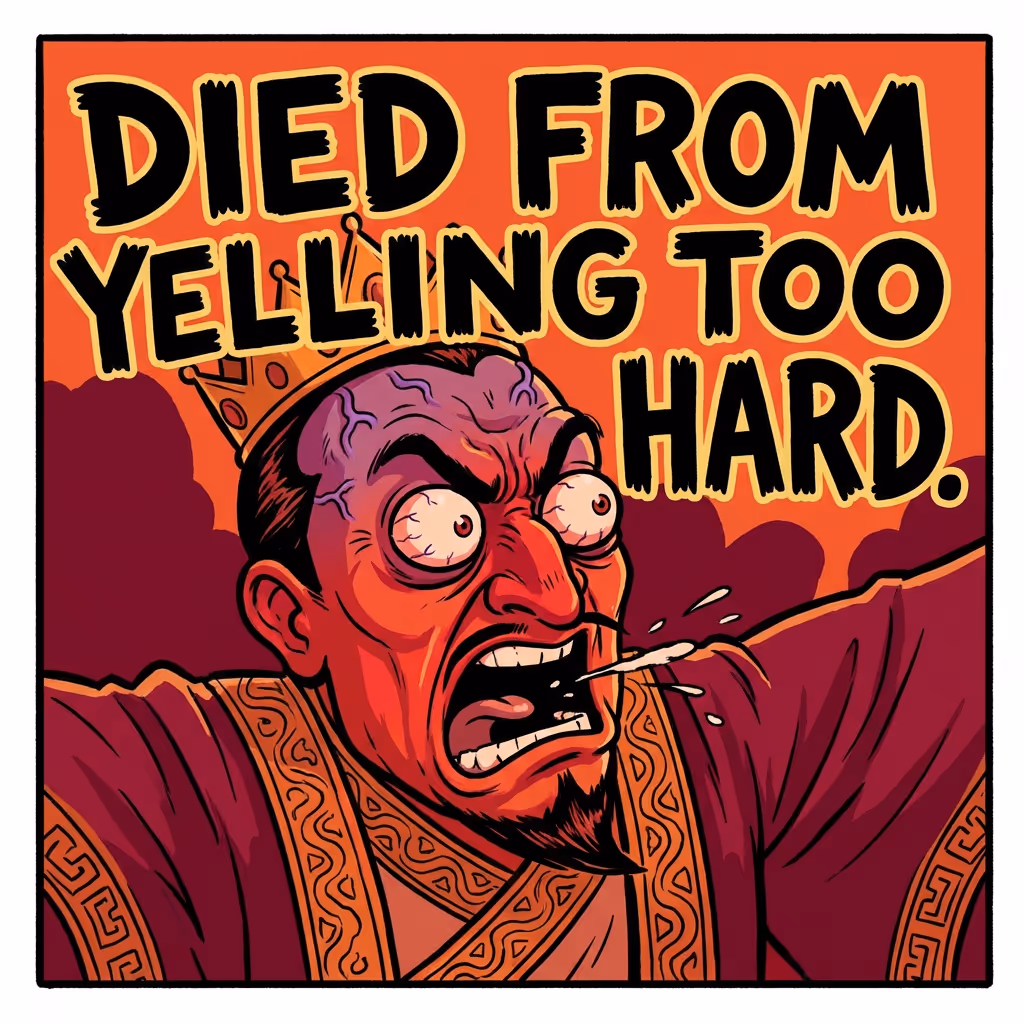 He flew into a rage, shouting and screaming at the envoys. He got so worked up that he burst a blood vessel in his brain and had a fatal stroke. He literally died from being too angry. 🤯