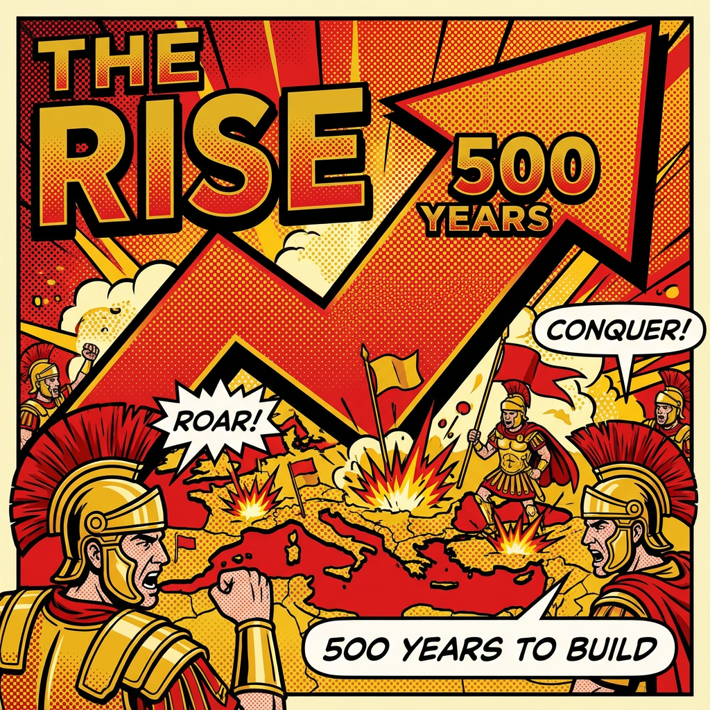 Rome wasn't built in a day—it took centuries. The story really kicks off with the **Roman Republic**, founded in **509 BC**. For the next 500 years, Rome was on a relentless grind, conquering its neighbors and expanding its territory.