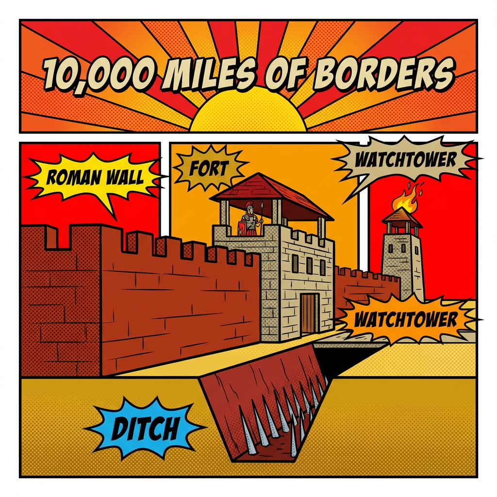 The Roman Empire was so massive, it had a **10,000-mile-long border** to defend. 🤯 That's like driving from New York to Los Angeles and back... three times. So how did they guard it all?